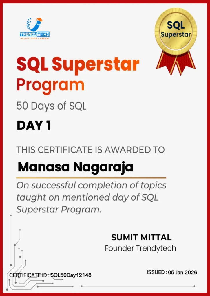 I'm good in big data stuff but in interviews many times I use to fail in SQL questions. Thanks Sumit sir for this SQL course, it is really helping me a lot.